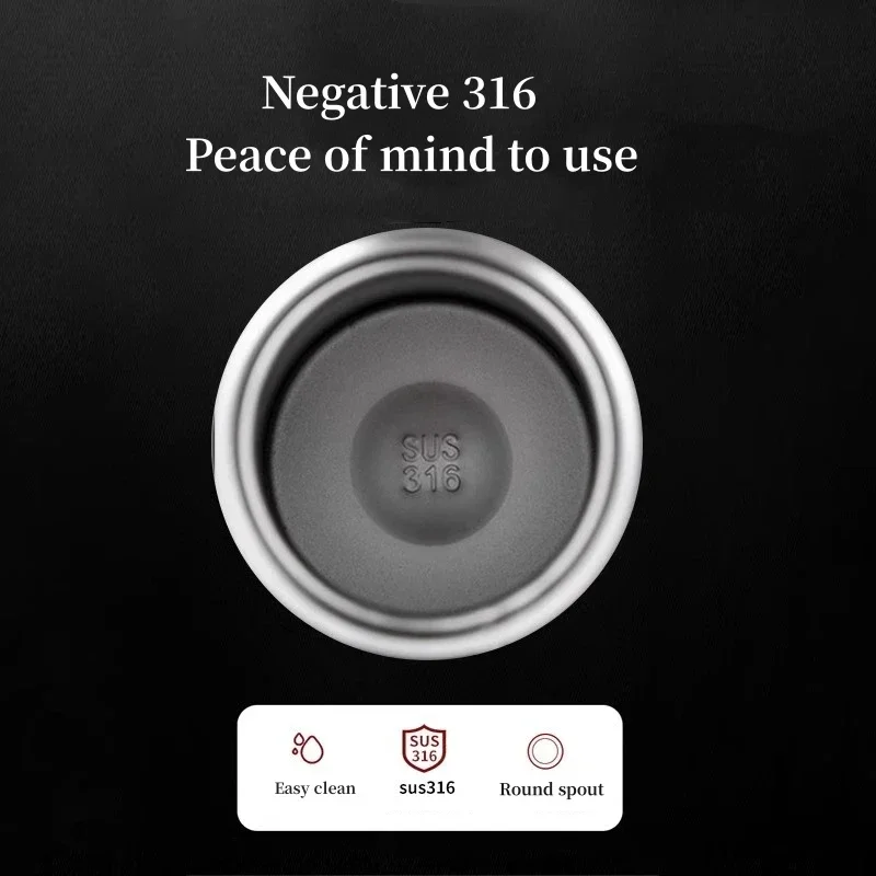 2. fabricado em aço inoxidável 316, design de vácuo de camada dupla, seguro, sem BPA e ecologicamente correto, inodoro e fácil de limpar. Pode manter água fria ou quente por 12 horas.