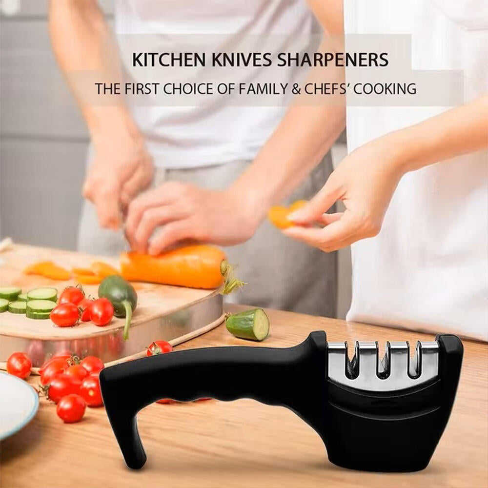 El afilador de cuchillos es una herramienta diseñada para restaurar el filo de los cuchillos desafilados. Sirve para eliminar el desgaste y los bordes romos, devolviendo a los cuchillos su capacidad de corte óptima. Al usar un afilador de cuchillos, se pueden obtener cuchillas afiladas y precisas, lo que facilita y agiliza la preparación de alimentos. Además, un cuchillo bien afilado reduce el riesgo de accidentes, evitando resbalones indeseados.