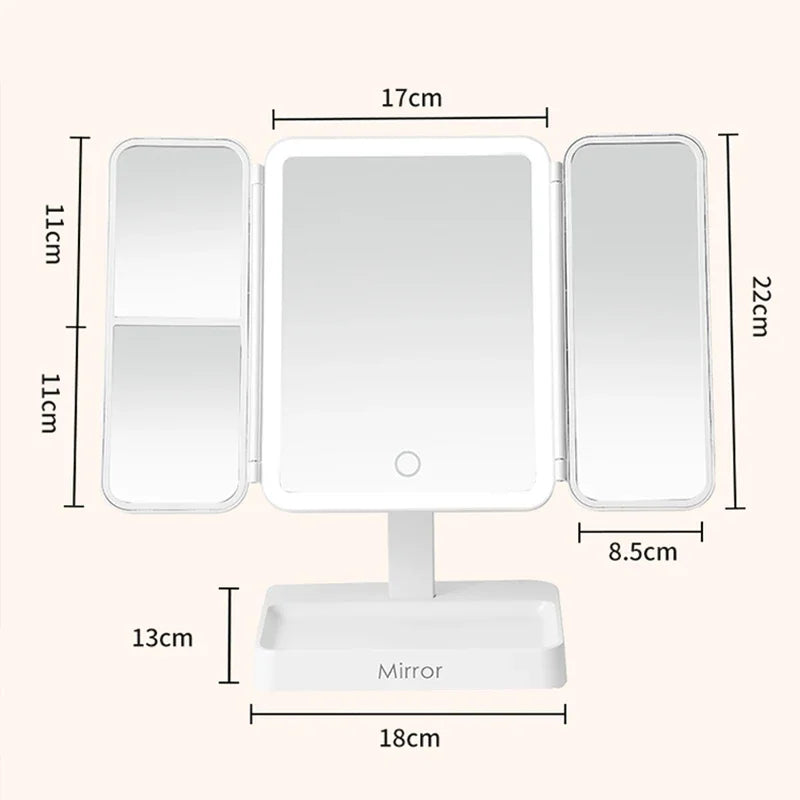 Tri-Fold LED Makeup Mirror 3 Tone Lights Portable Compact Desktop Vanity Mirror 2X/3X Magnifying Rotable Lighted Makeup Mirror