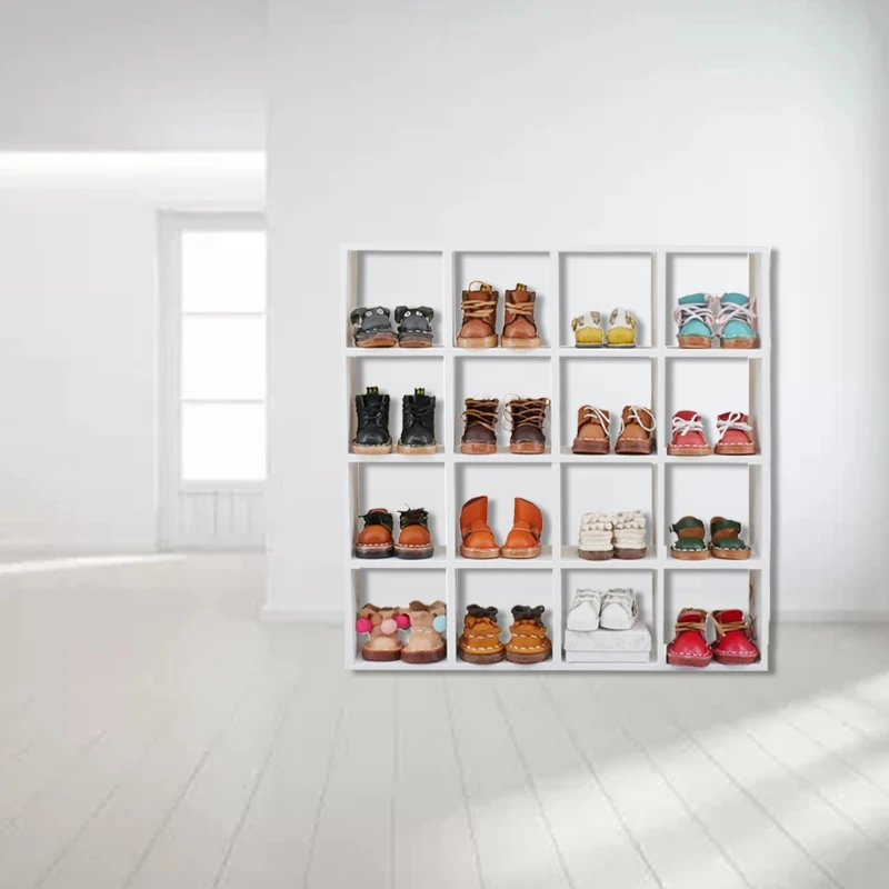Estante de almacenamiento de madera para casa de muñecas en miniatura, escala 1:12, blanco, 16 estantes de rejilla, estante de pared decorativo para casa de muñecas, estantería de exhibición, casa de muñecas